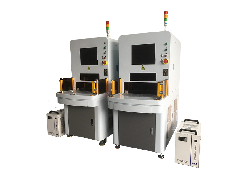 雙工位旋轉工作臺,一個工作臺用于上料和下料,另一個用于激光打標,可以有效提高工作效率。高精度的旋轉工作臺,能實現手動/自動旋轉,配合人性化的光幕設計,可以實現高效,安全的生產。根據客戶工藝要求,雙工位旋轉工作臺也可以集成CO2、綠光,紅外或者其他激光器類型。
